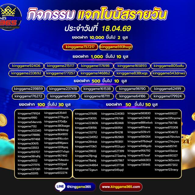 เว็บตรง ที่มั่นคง ปลอดภัย ครบจบในที่เดียว เว็บ kinggame365.com มีให้บริการทั้ง คาสิโน และ สล็อต มากมายที่ทำให้ผู้เล่นได้เข้าถึงอารมณ์คาสิโนอย่างแท้จริง เสมือนเข้าไปนั่งเดิมพันในคาสิโนที่ยิ่งใหญ่ ที่มีน้อง ๆ คอยบริการอย่างใกล้ชิดเลยทีเดียว เพราะ king game365 ใส่ใจทุกขั้นตอนตั้งแต่ ผุ้เล่นเลือกที่จะสมัครกับทางเว็บของ kinggame 365 เว็บพนันออนไลน์ ไม่ผ่านเอเย่นต์ ถ้าผู้เล่นสนใจสมัครสมาชิกเองก็สามารถกดเข้าไปได้ที่หน้าเว็บของ Kinggame365.com ได้ทันที หรือจะให้น้อง ๆ แอดมินบริการสมัครสมาชิกให้ก็ได้เช่นเดียวกัน ง่าย ๆ เพียงไม่กี่ขั้นตอนเท่านั้น ผู้เล่นก็สามารถเข้าเดิมพันได้ตามคาสิโน ที่ผู้เล่นเป็นคนเลือก หรือเกมสล็อตต่าง ๆ ที่ผู้เล่นสนใจได้ด้วยตนเอง และระบบการฝากถอนเป็นแบบ ออโต้ ภายใน 2 วินาที และยังไม่มีขั้นต่ำในการฝากถอน อีกต่างหาก ไม่ว่าผู้เล่นจะมีทุนมากหรือน้อย Kinggame 365 เว็บตรง ก็สามารถให้ผู้เล่นเป็นเศรษฐี ได้เหมือนกัน เพียงแค่ผู้เล่น เลือกเกมและเข้าเดิมพัน ได้รับอัตราการชนะมากกว่า 90 เปอร์เซ็นต์